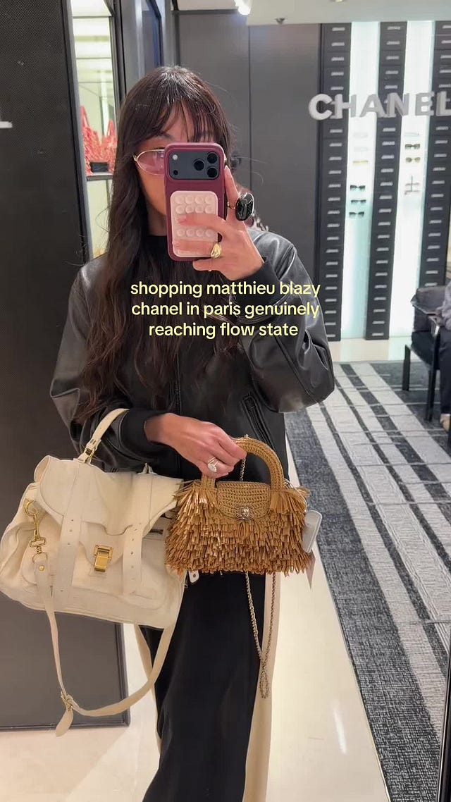 The absolute debut of the collection was in Paris on March 5. The timing was perfect: not only was every person who mattered in the industry there, not only was anticipation for the Chanel FW26 show sky-high, but the collection had finally arrived in stores, you could literally go and pick it up. The stores were stormed. This is where the Chanel-mania narrative was established: the first reports from editors, stylists, and influencers arrived; the first stories of celebrities spotted in the store and accounts of fabulous and mysterious historical clients booking exclusive appointments and clearing out shoes and bags. Then came the show with all its media buzz.